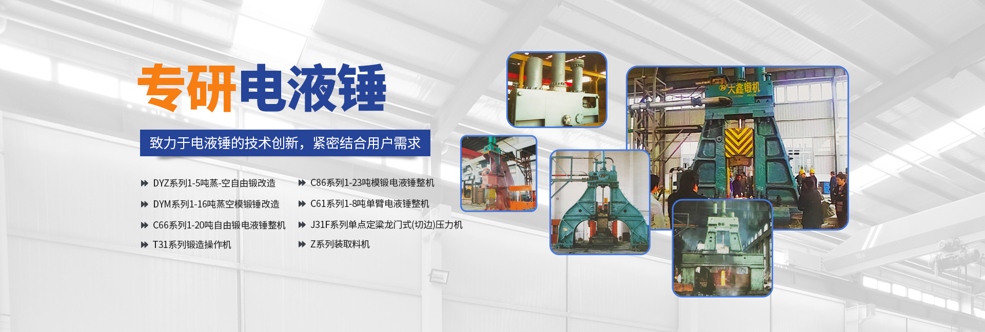 安陽市大鑫重機環(huán)保設備有限公司(原福士德),是一家專注研發(fā)生產(chǎn)電液錘的高技術企業(yè),隸屬安陽市殷都區(qū)企業(yè),企業(yè)創(chuàng)辦人研制電液錘已有二十多年歷史,積累了豐富的經(jīng)驗和技術,使產(chǎn)品技術始終處于國內(nèi)水平,并已生產(chǎn)銷售近百臺電液錘,受到用戶廣泛好評。企業(yè)座落在享有“鍛錘之鄉(xiāng)”的安陽市殷都區(qū)——安姚路東段。廠區(qū)占地面積20畝,車間建筑面積3000多平萬米。企業(yè)現(xiàn)有正式員工177人,其中工程師3人,工程師及以下職稱工程技術人員19人。企業(yè)設有“六部四車間(公司)”,即銷售部、管理部、技術部、質保部、制造部、工程部、財務部;鉚焊車間、機加工分公司(輝縣市億豐重工有限公司)、裝配車間。擁有主要加工和檢測設備二十多臺(套)。企業(yè)主導產(chǎn)品為系列電液錘及輔機:DYZ系列1-5噸蒸-空自由鍛改造DYM系列1-16噸蒸空模鍛錘改造C66系列1-20噸自由鍛電液錘整機C86系列1-23噸模鍛電液錘整機C61系列1-8噸單臂電液錘整機J31F系列單點定粱龍門式(切邊)壓力機T31系列鍛造操作機Z系列裝取料機產(chǎn)品“單一”的企業(yè)特點凸顯企業(yè)“專注”電液錘研發(fā)的顯著特色。這一特點是基于企業(yè)自身情況下的企業(yè)頂層設計理念;規(guī)模定位“中而強”,技術瞄準“特而新”,產(chǎn)品必須“專而精”。技術創(chuàng)新是企業(yè)發(fā)展的導向。多年來,企業(yè)始終專注于電液錘的技術創(chuàng)新,緊密結合用戶意見和要求,不斷升級產(chǎn)品技術水平,例如,對系統(tǒng)進行全方位優(yōu)化設計,進一步提高設備節(jié)能效果;對系統(tǒng)主要性能參數(shù)進行數(shù)顯改造升級,提高設備的可操作性;對“氣-液”系統(tǒng)進行優(yōu)化設計,使錘能夠發(fā)揮打擊能量;對“專用閥”系統(tǒng)進行優(yōu)化設計,降低液阻,提高操作靈活性;對“錘桿密封”系統(tǒng)進行“巧妙”設計并選用進口密封件,大幅度提高密封壽命……質量保證是企業(yè)的生命。技術創(chuàng)新為產(chǎn)品質量保證打下堅實的基礎。同時企業(yè)始終貫徹“ISO9001:2000質量管理體系“的“大質量”觀念,各部門以“質量程序文件”為指導,齊抓共管。用每個人的工作質量,來保證過硬的產(chǎn)品質量。質檢部門實行“工序道道必檢,零部件件件必檢”的工作原則,既不能讓不合格零部件流入下工序,更不能讓不合格件出廠。采購部門實行“貨比三家,價高必須優(yōu)質”的原則,嚴格保證外購件具有高的“性價比”。質量檢驗的“原始記錄”為每個零部件建立了檔案,保證產(chǎn)品質量的“可追溯性”。用戶服務是企業(yè)的良心。我們把“急用戶之所急,想用戶之所想”當做企業(yè)的良心來以一貫之。用“換位思考”(假如我是用戶)的理念替用戶著想,并做到“及時、高 效、全 面”地為用戶服務,確?!邦櫩蜐M意率達到95%以上。正所謂“金獎銀獎,不如用戶夸獎”。胸懷《道德經(jīng)》,“大鑫”行天下。企業(yè)一貫堅持“文化興企”的管理理念,蓄他人之長,集團隊智慧,以超前的思維,不斷賦予企業(yè)文化新的內(nèi)涵。在國家工商總局注冊的“大鑫”牌商標,賦予其深刻的文化內(nèi)涵(大信問天,大道致遠;錘煉金典團隊,鑄金質品牌,健步金光大道。),為自己的產(chǎn)品和服務打上了誠信的印記,走出了一條“用文化品牌戰(zhàn)略,企業(yè)不斷發(fā)展狀大”的成功之路。安陽市當屬歷史文化名城,七大古都之首,殷商文化發(fā)源地。旅游景點精彩呈現(xiàn):殷墟博物院、中國文字博物館、曹操高陵、袁世凱陵、岳飛廟、馬氏莊園、紅旗渠、太行大峽谷……安陽市位于河南省北部,是京廣鐵路、京珠高鐵、京珠高速、107國道的經(jīng)由城市。南距鄭州機場200公里,北距邯鄲機場40公里。交通十分便捷。熱忱歡迎新老用戶蒞臨我公司考察指導!